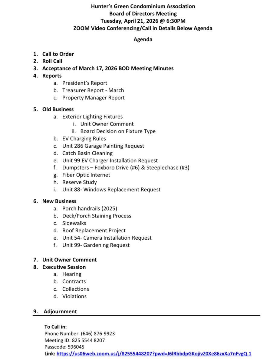 This website is primarily for the use of owners and residents of Hunter's Green Condominium Association